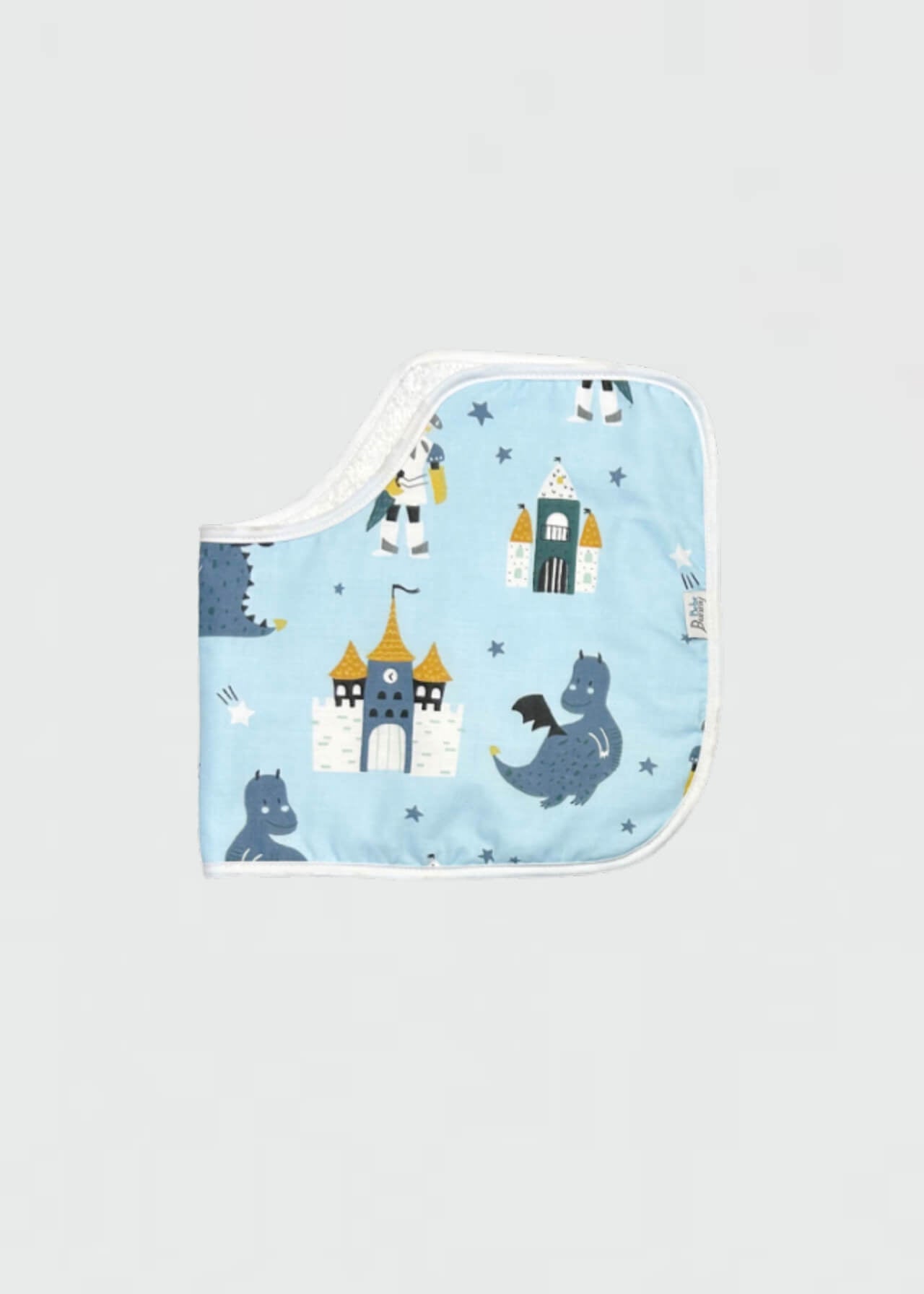 Ηandmade shoulder towel for your baby's ''belching''. Made in a ''eight'' shape for a perfect fit on the shoulder. On one side it has a 100% cotton fabric with a design and on the other a 100% cotton towel.