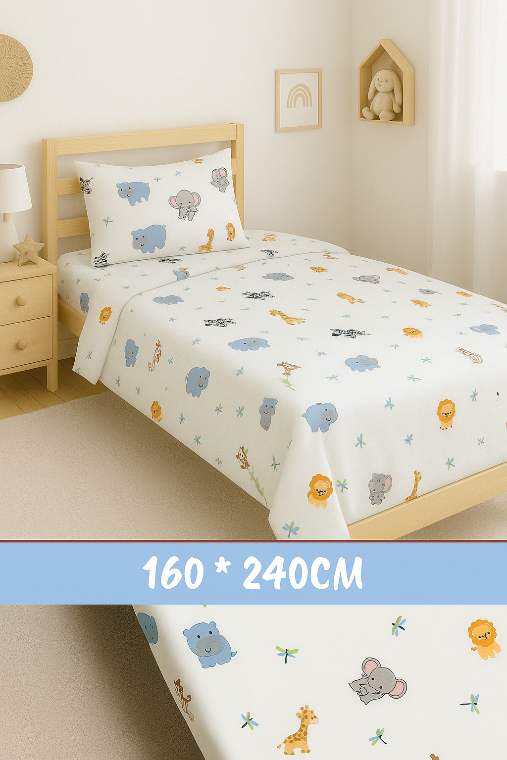 Children's sheet 160 x 240cm without elastic and a pillowcase 50 x 70cm. Suitable for all seasons. 100% cotton fabric, certified for harmful substances according to Oeko-Tex standard 100.