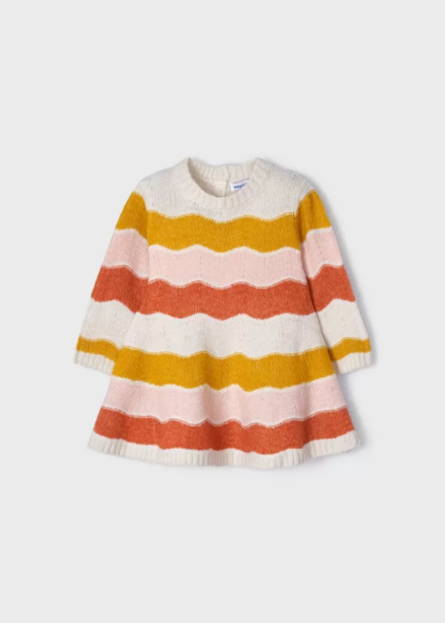 Long sleeve knitted dress. Small opening at the back with a button closure to facilitate the placement of the garment.. #Mayoral Ecofriends